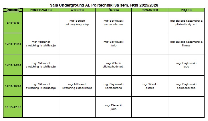 12:15 - 13:45 - Body art./pilates - mgr Paweł Wlazło