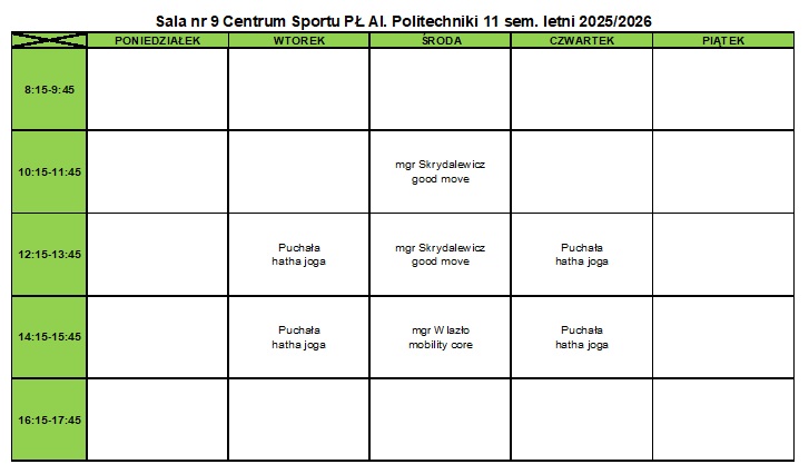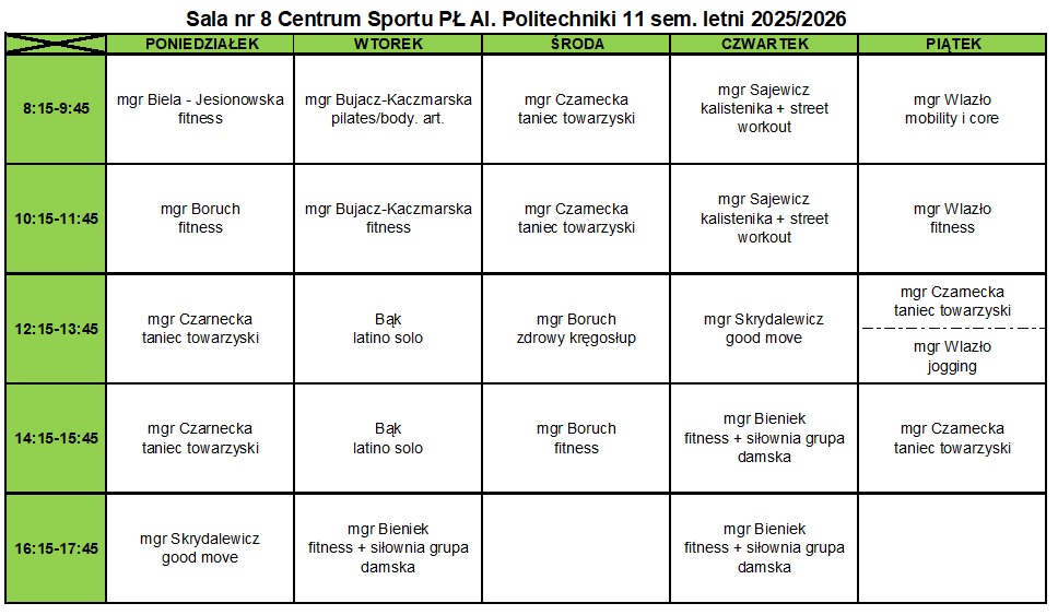 12:15 - 13:45 - Body art./pilates - mgr Paweł Wlazło