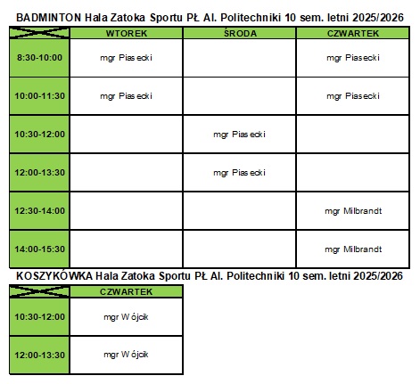 8:30-10:00 badminton - mgr Tomasz Piasecki